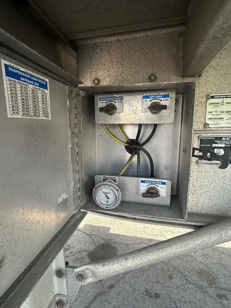 Additional Details: Alcoa Dura-Brite Wheels | 8′ Quick Draw With Quad Lift Bows for Tall Loads | (5) J-Tracks in Floor | 24″ X 24″ X 60″ Double Door Tool Box | J-Hook Storage Box | Rite Way Gauge in Box With Dump Control And Lift Switch | Extra Large Man Door on Sliding Tarp | Hook Ups at Landing Gear and Front | Stainless Rear