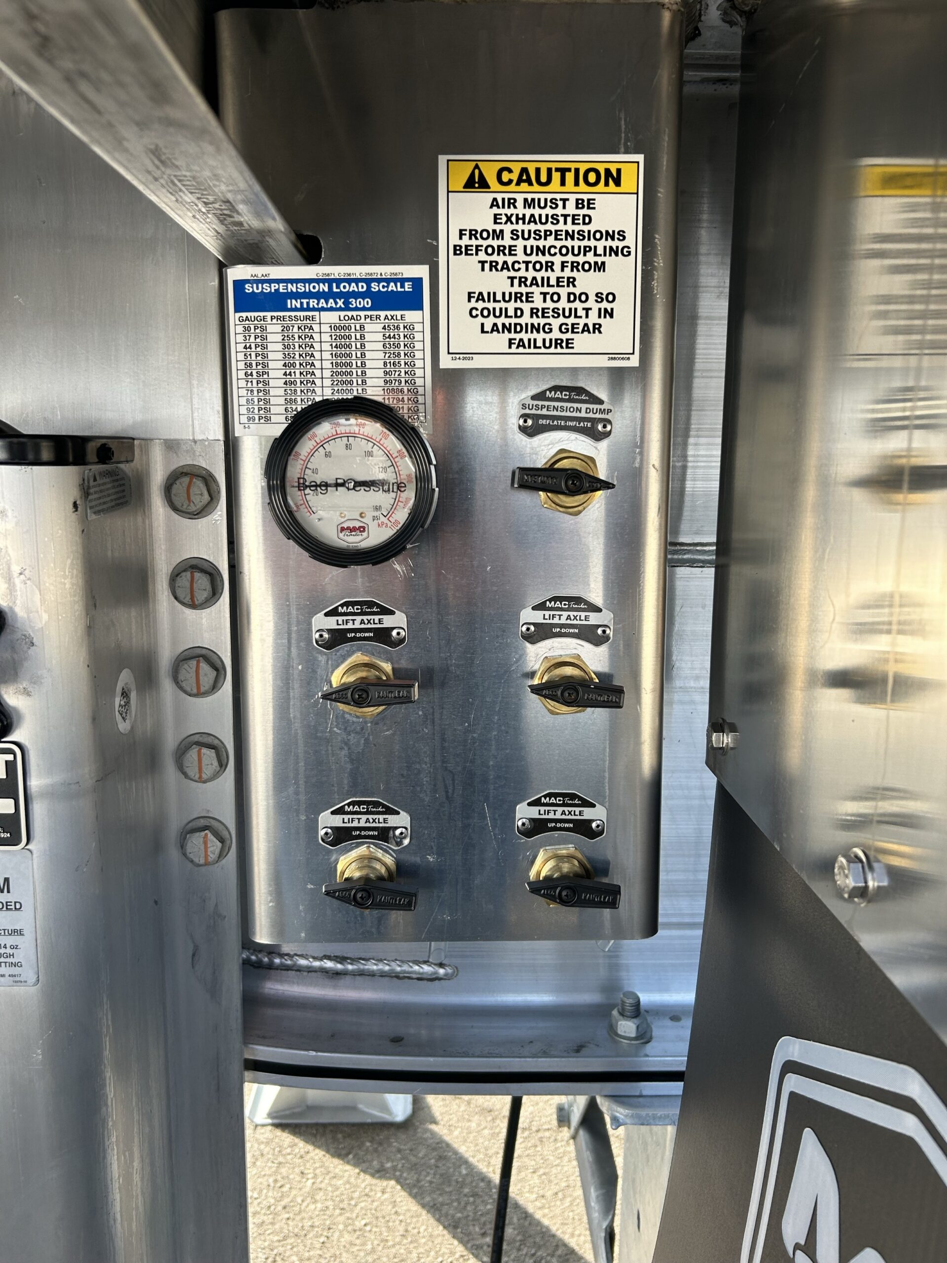 - Lift Axles on Axles 1, 2, 7, and 8 with Super Single Tires